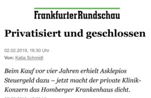 Es lohnt sich, den HNA-Beitrag vom Juli 2020 noch einmal genau zu lesen. Er ist aufschlussreich. 10 Jahre nachdem Asklepios die Kreiskrankenhäuser gekauft hat und danach das Homberger Krankenhaus geschlossen hat, wurde der Standort Homberg für Asklepios zur Last. Jährlich kostete der Leerstand dem Konzern rund 50.000 Euro. Das sollte beendet werden. Asklepios […]