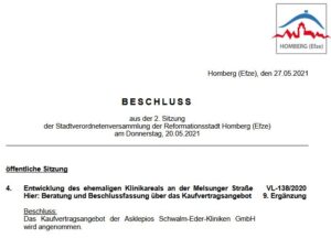 Dies haben die Homberger Stadtverordneten gewusst und sie haben am 20. 05. 2021 zugestimmt.