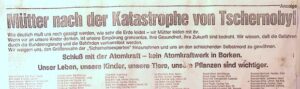 Die radioaktive Wolke war auch nach Deutschland gezogen. Wie gefährlich sie sein konnte, war nicht bekannt. Es gab zwar in den Nachrichten Meldungen über unterschiedliche Becquerel-Werte, Zahlen. Doch welche Gefahr war real damit verbunden?