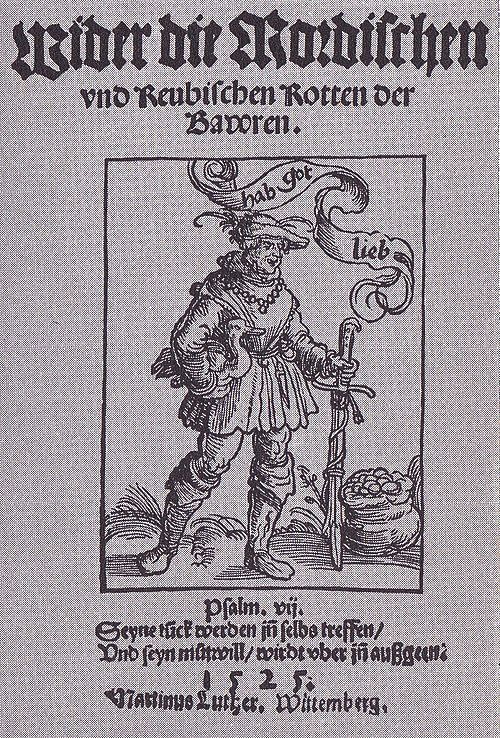 „die mörderischen und räuberischen Rotten der Bauern … zerschmeißen, würgen, stechen, heimlich und öffentlich, wer da kann, wie man einen tollen Hund erschlagen muss.“ Quelle