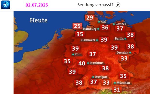 Wie viel Grad Celsius werden wohl heute auf dem Parkdeck gemessen werden, dem Tag, an dem in der Region 37° C erwartet werden?
