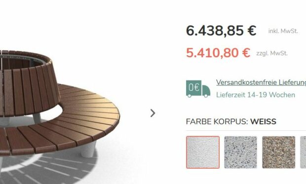 Nach den Kosten, die im Internet für eine Rundbank zu finden sind, würde allein eine Bank gut 6.400 Euro kosten. Hinzu kommt die Aufstellung. Wenn man diesen gefundenen Preis annimmt, dann hätten die drei Bänke 19.200 Euro gekostet, mit den weiteren Kosten für die Aufstellung wird der Betrag über 20.000 Euro liegen.
