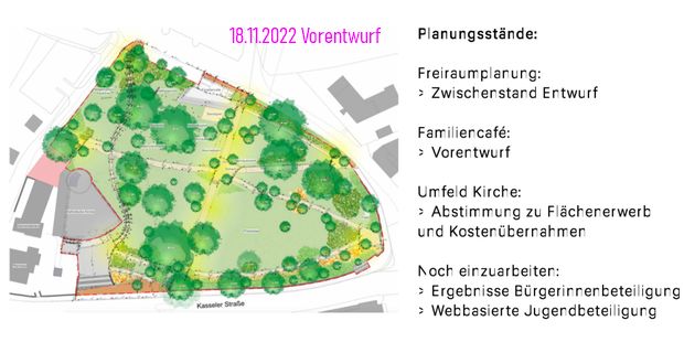 Im November 2022 wird der Vorentwurf für das Familiencafé und die Ergebnisse der Jugendbeteiligung vorgelegt, obwohl die Wirtschaftlichkeit nicht geprüft wurde.