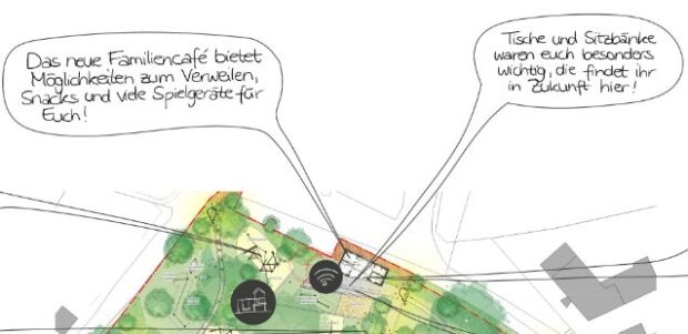 Am nordöstlichen Rand des Stadtparks innerhalb des Planungsbereiches soll ein Familiencafé errichtet werden.