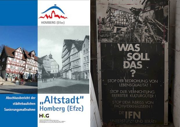 Homberg laboriert seit Jahrzehnten ohne eine solche Festlegung. Googelt man einmal über Homberg, wird man immer den Hinweis auf ein weitgehend erhaltenes, mittelalterliches Stadtbild (Fachwerkensemble) hingewiesen. Wenn jedoch der jetzt begonnen Stadtumbau weiter so fortschreitet und auch noch das Gebäude Holzhäuser Str. 3 abgerissen werden soll, bleibt bald nichts mehr von dem Stadtbild.