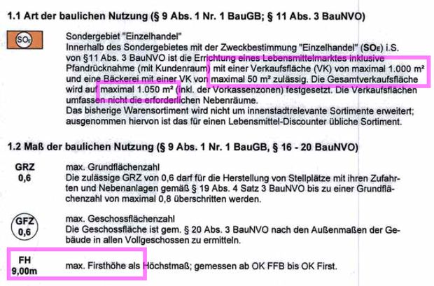 Im Änderungsplan für die derzeitig genutzte Lidlfläche sollen 4000 m² Einzelhandel oder Flächen für Dienstleister (ohne Angabe von m²) ausgewiesen werden.