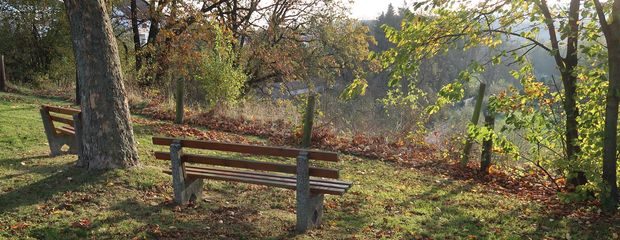 Foto: Bälnke am Ende des Adam-Krafft-Wegs mit Blick auf den Hang unterhalb der Bebauung Schmückebergsweg.