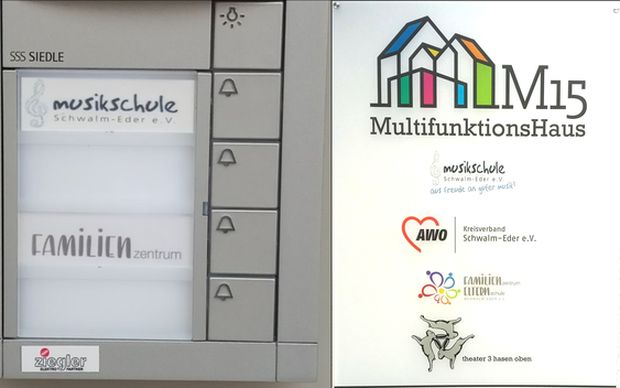 Foto: Klingelschild und Hausschild des Multifunktionshauses M15