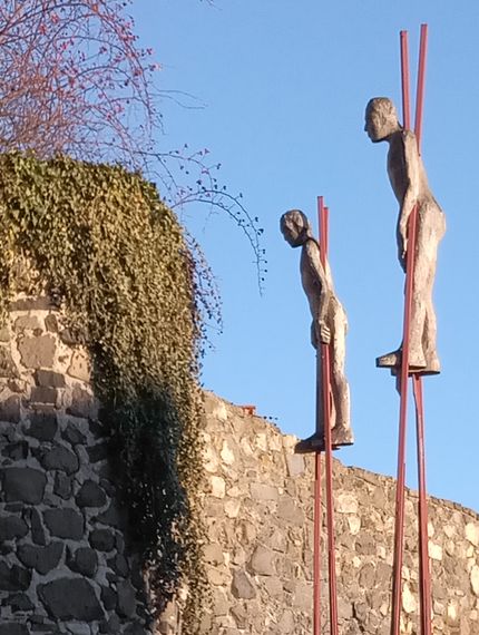 Die Stelzenläufer sind eine Arbeit des Künstlers Ernst Groß.