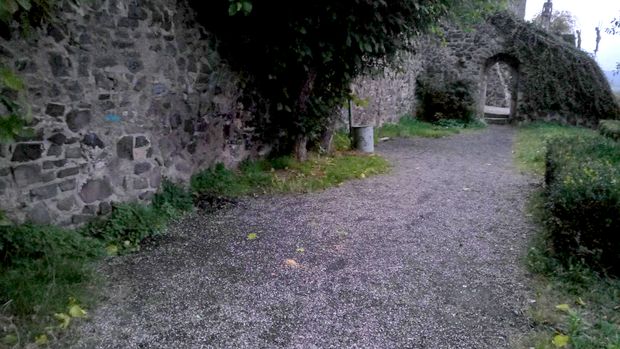 Foto: Grünanlage Wallgärten, hier standen einmal Bänke, im Boden waren Bodenstrahler eingebaut, die die Stadtmauer erhellten.