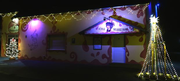 Foto: Puppenbühne mit Weihnachtsbeleuchtung zu König Drosselbart