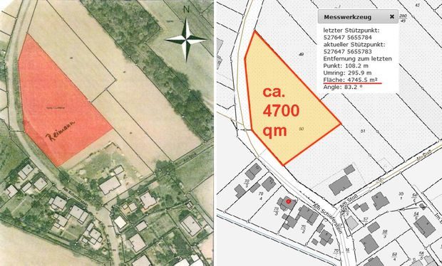 Eine Prüfung der Angaben beim Hessischen Bodeninformationssystem ergibt, dass die den Stadtverordneten vorgelegte Zeichnung nicht 3.000 qm sondern ca. 4.700 qm groß ist. Die Fläche ist also 57 Prozent größer als angegeben. Der Gesamtpreis wäre dann auch nicht 75.000 Euro sondern 117.500 Euro.