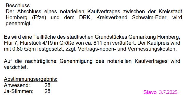 Textauszug aus dem Protokoll der Stadtverordnetenversammlung am 3.7.2025