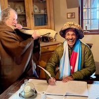 Charles Medeiros in der Türmerwohnung in Turm der Stadtkirche beim seinem Besuch im Februar 2025 in Homberg