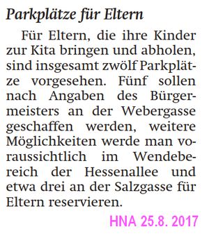 Die Stellplatz-Satzung spricht aber nicht von "ausweisen", sondern spricht von "neu zu schaffenden Parkplätzen". In den Gassen werden die wenigen Stellplätze von den Anwohnern benötigt. Wo sollen diese dann parken, wenn die jetzigen Plätze für den Kindergarten reserviert werden?