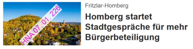 Die Überschrift in der HNA lautete: "Homberg startet Stadtgespräche für mehr Bürgerbeteiligung"