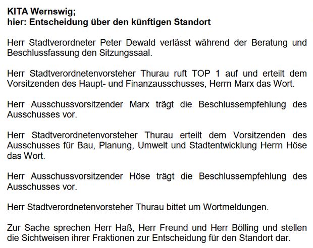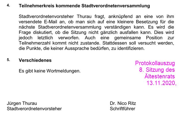 Im Protokoll der letzten Stadtverordnetenversammlung kurz vor Weihnachten heißt es: