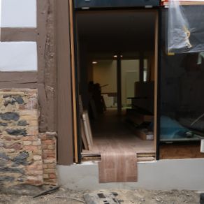 Es wirft aber gleichzeitig die Frage auf, warum wird hier auf der einen Seite ein Ensemble mit behördlicher Genehmigung und Förderung zerstört und bis zur Unkenntlichkeit verschandelt und auf der anderen Seite ein Gebäude Balken für Balken erneuert, obwohl wir nie eine Barrierefreiheit erreichen werden. Die Wohnungen werden in Mitten der Räume eine 20 cm hohe Schwelle haben.