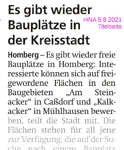 Und jetzt, drei Wochen später, wird auf der Titelseite der HNA geworben, dass es wieder Bauplätze in der Kreisstadt gibt. Es müssen jetzt auch keine besonderen Bedingungen eingehalten werden, jeder kann sich bewerben.